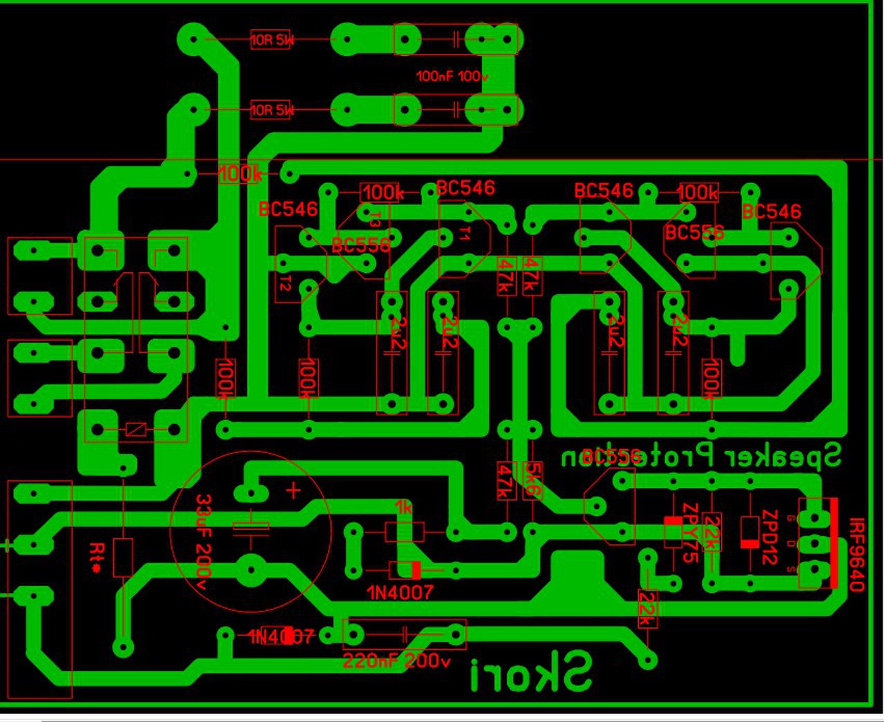 Még egy kérdés. Muszáj olyan nagy feszültségű kondi a C5 és a C6-nak? Na meg a C6-os kondi negatív ágon lévő lába a kapcsolásirajz- és a panelrajz-on máshová van kötve.