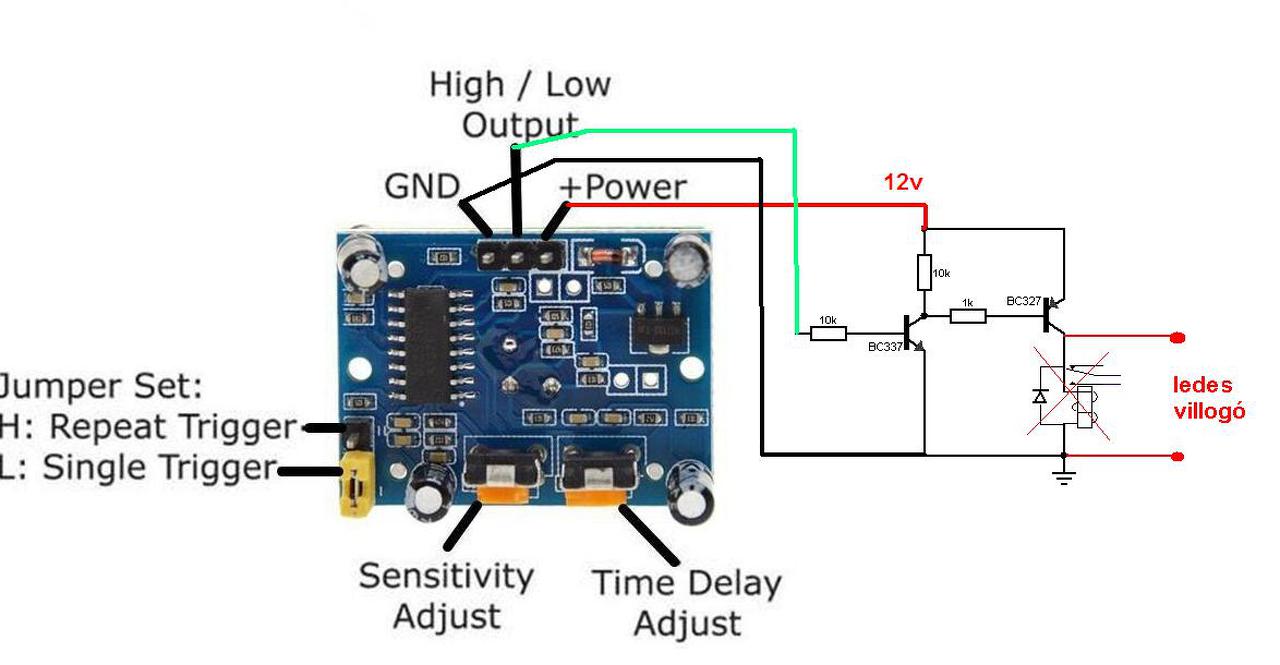 A H17133 3,3v stabilizátor adja a tápfeszt így nem adhat ki nagyobb kapcsoló jelet ( nem látok a panelen + kapcsoló tranzisztort). Megoldás lehet npn kapcsoló tranzisztor vagy optocsatoló ha az érzékelő kimenő jele terhelhető az opto led áramával.