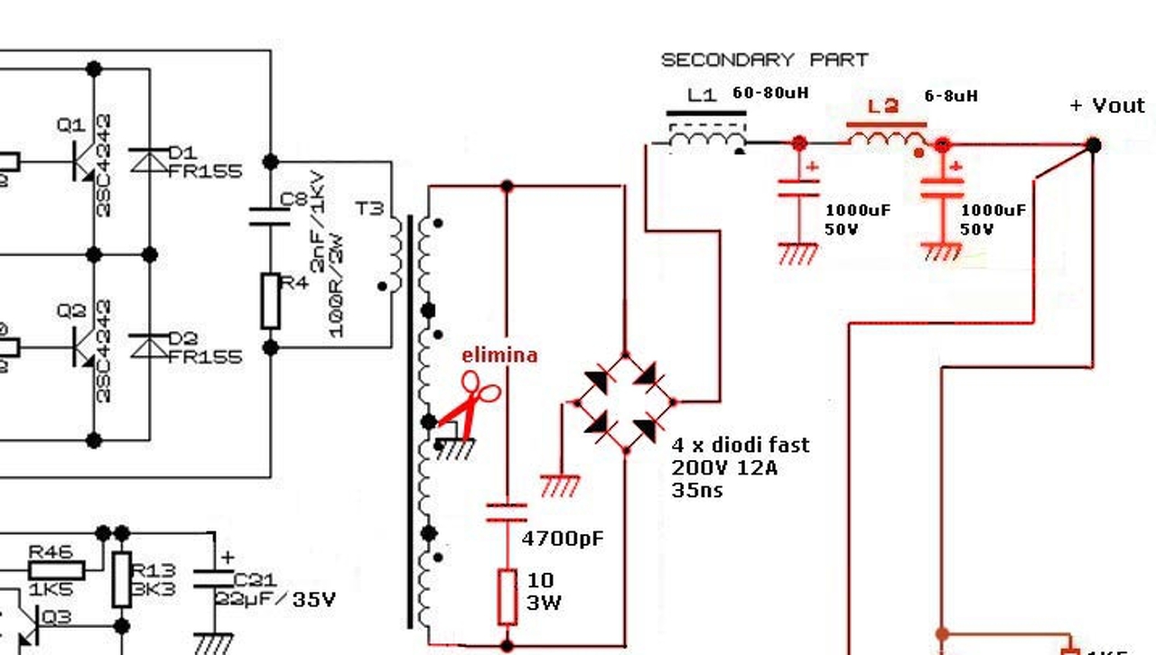 A BD249-et felejtsd el, feteket kell használni, gyors meghajtással, szoros csatolásúra tekert push pull primerrel. Az elrendezés hajazni fog az autóserősítők tápjára, csak lesz benne visszacsatolás is a pwm szabályozáshoz. Nagy vonalakban néhány kép, az oldalt most nem találom. A kérdésedből ítélve alaposabban körbe kellene járnod a témát, mielőtt füstjeleket eregetnél a félvezetőkkel.
