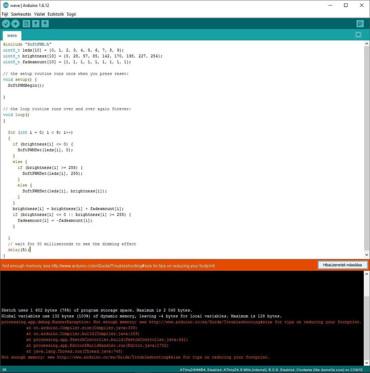 A másik problémám az, hogy ez egy hajszál híján, de nem fér be az attinybe (2k), ezért valami egyszerűsítést kéne rajta csinálni.