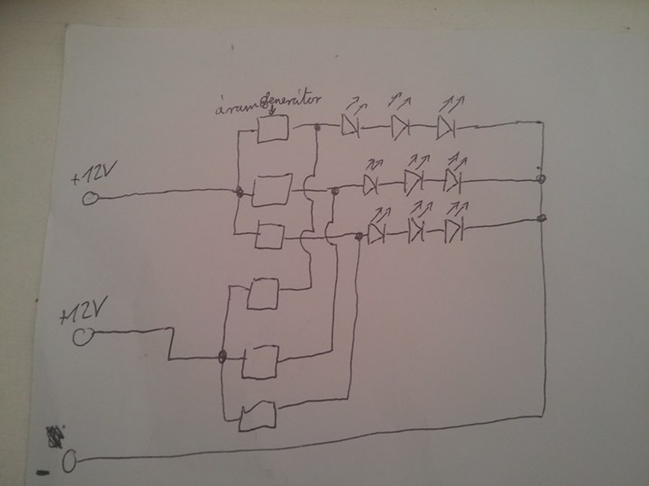 A rajzodon csak 9 LED-et látok... ennek mi az oka? Meg kell nézni, hogy hányat tud meghajtani egy áramgenerátor, és úgy csoportosítani soros láncokba. Úgy tűnik mégsem olyan jó az ötletem mert egyszerű, de drága, sok áramgenerátor kell hozzá. Tulajdonképpen ha nem beállítható fényerő kell, akkor a felezés úgy is megvalósítható, hogy a LED-eknek csak fele világít.... A hozzászólás módosítva: Máj 22, 2017