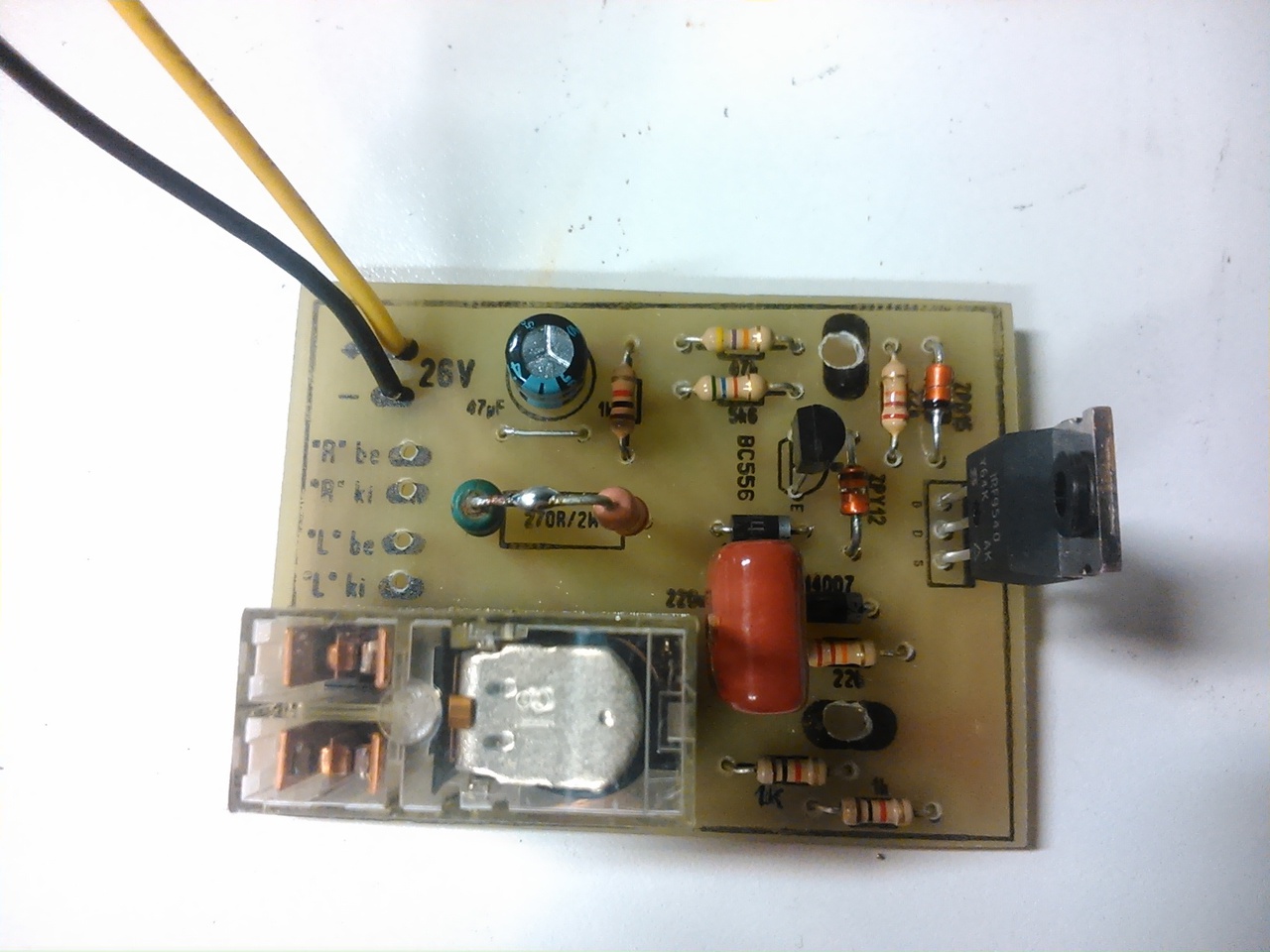 Végül is a puding próbája az evés, bekapcsolva hagytam a koppanásgátlót, és nem melegszik a FET. A relé előtét ellenállása melegszik csak mert nem volt 1W-os ellenállásom, csak fél wattos, de az sem tűzforró, csak meleg. Ha megyek a boltba akkor veszek bele.