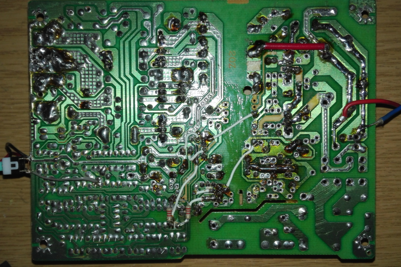 Elkészült a "remekmű", de még csak tesztelgetem. A NYÁK-ot ne nézzétek, bontott lomból nem lehet szebbet kihozni, de gyakorlásra megteszi. Viszont van még mit javítani rajta. Az egyik probléma az az, hogy ami a trafó lábain van a FET-eknél soros R-C tag (100nF+56ohm), ott eléggé melegszik az ellenállás, ill. üresen, csak a venti meg a 2 ellenállás terhelésénél kicsit melegszik a vasmag. 15V-ról 680mA-t vesz fel így. Lehetséges, hogy kevés neki a 6+6 menet?