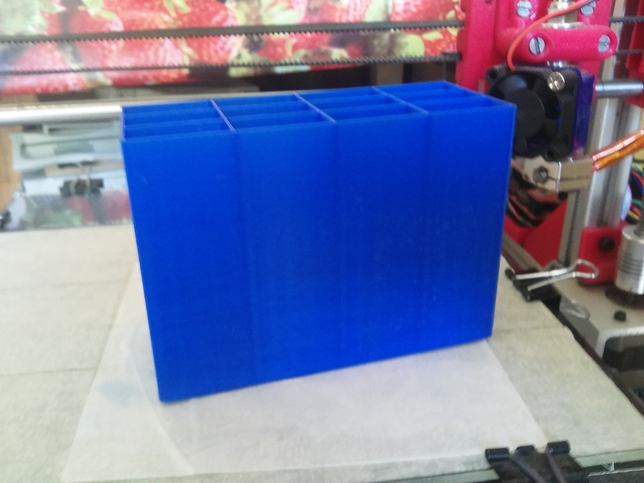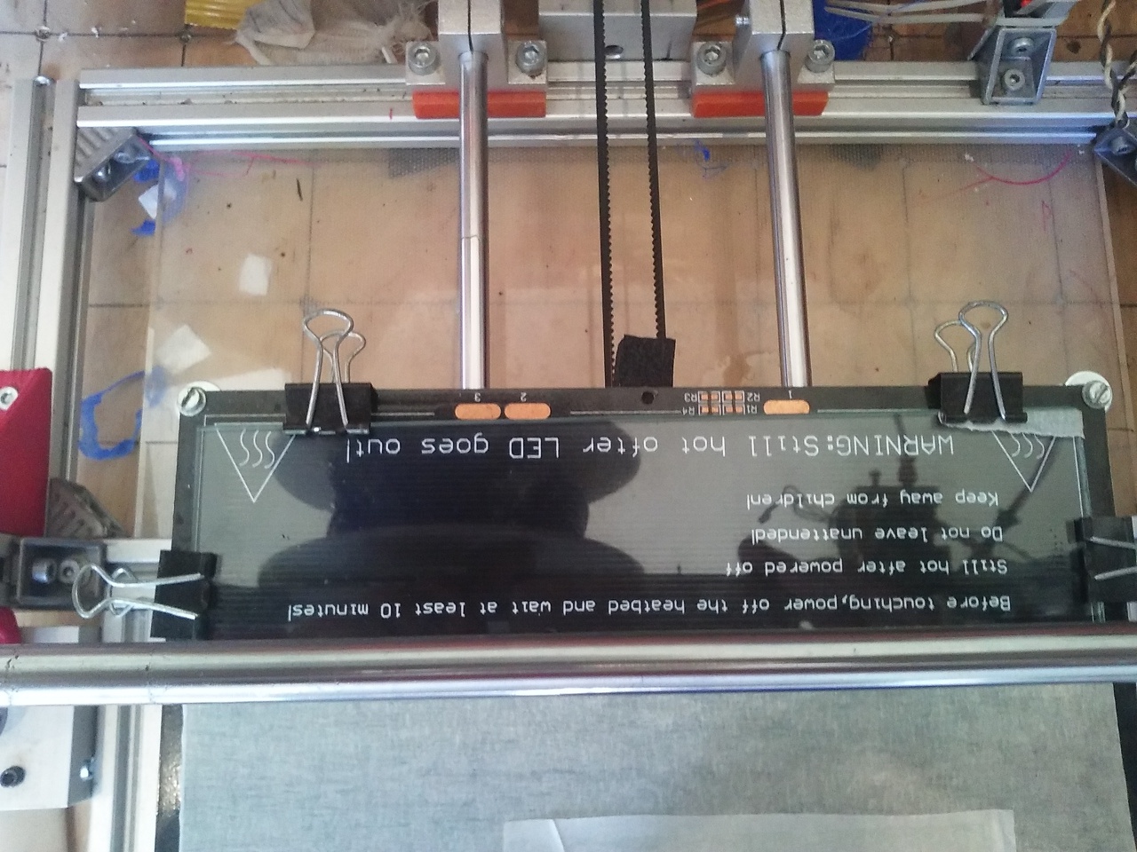 Azóta is a nozzle és a hotbed közti távolsággal szenvedek, de valami rohadtul nem oké, vagy a két alsó pálca hajlott amin a hotbed fut, vagy a hotbed vagy a hotbed alatti plexi, mert amint lehet látni a mellékelt képről (bal oldalról fényképeztem a nyomtatót, a hátulját totál be kellett csavarnom az eleje teljesen fent és így fut végig úgy a nozzle, hogy egy A4-es lap fér be....valami nem oké...