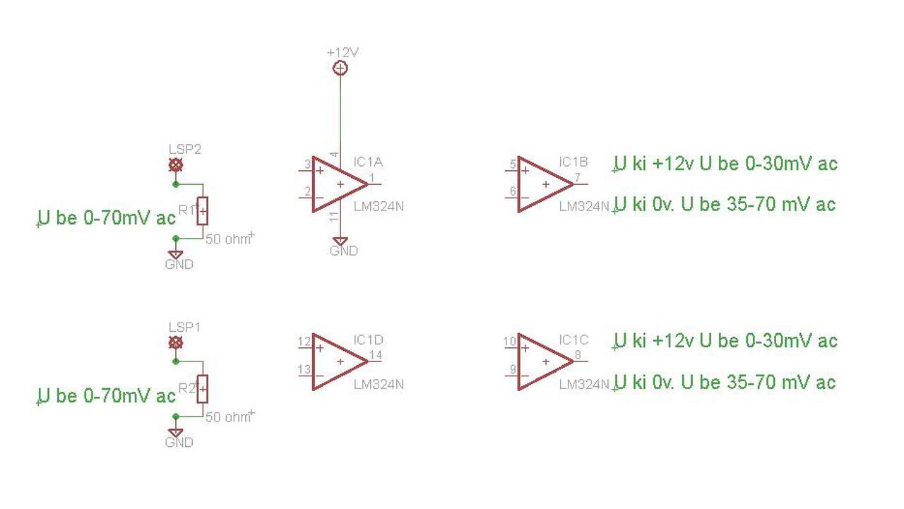 Egy kapcsolási rajz szerkesztést kérnék . Bemenő feszültség 0-70 mV ac 50 Hz adatok a képen . Kimenet terhelés igény 20 mA Led