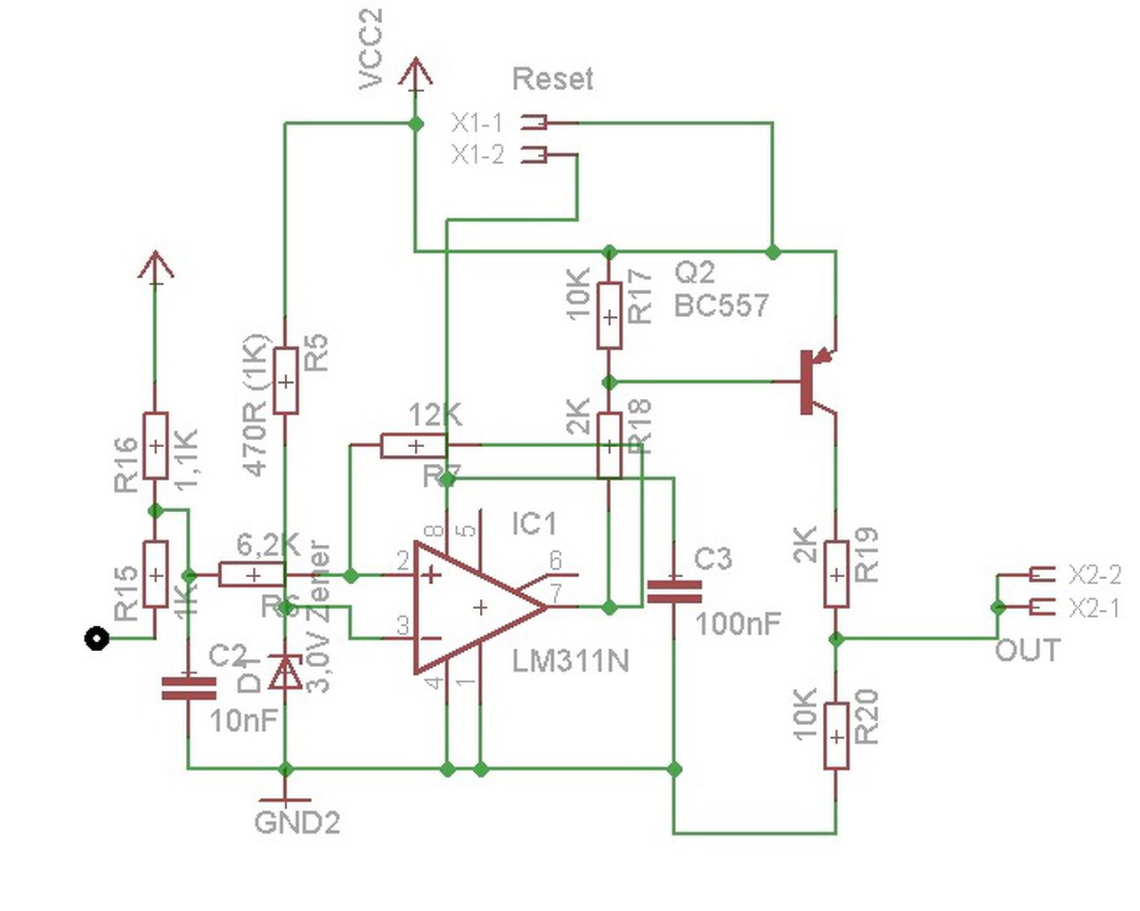 Igen végigszámoltam kicsit keményebb felhúzóellenállás kellene a 10K helyett, pl. 1K úgy már jó. Resetelni azért nem akarok a bemenet felől, mert csak úgy lehet, ha külső módon megváltoztatom a bementet, vagyis az áramfelvételtől jövő feszültséget, de addig amíg ezt teszem a védendő áramkör védtelen lesz. Szóval vagy csak egy nagyon rövid impulzussal tehetném meg ami plusz alkatrészek vagy a tápnak nyomok egy resetet. Mindenképpen külső manuális resetelést akarok. Ha lehetne egyszerűsíteni adhatsz tippeket, szívesen venném. Idézet: „1,96 az alsó és 4,55 a felső határérték” Melyik feszültségre vonatkozóan? Egyszer úgy tűnik hogy a bemeneti pontra értelmezed, máskor meg a komparátor feszültségére, de az önmagában is ellentmondásos, mitől lenne 1,96V a billenési küszöb? Jó lenne tisztázni a követelményeket, definiálni a mérőpontokat. Én abban sem lennék biztos, hogy tényleg 0 és 5V közti a bemenő jel, a bemeneti áram jelentős mértékben elhúzhatja.