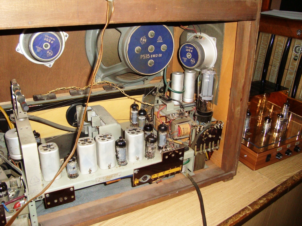 Üdv mindenkinek. Ma összehozott a sors ezzel a Beethovennel, gondoltam írok róla pár sort. A készülék több más NDK-s társával (Stassfurt, Meiningen, Havel, Löschnitz, stb) 1957 ben került az országba. Az 56-os események miatt egy darabig leállt az Orion rádió gyártása, és akkor importálták őket hiánypótlásként. Nagyon szépen kivitelezett, stabil megbízható gépek voltak, ezek közül is kimagaslott a Beethoven, Ez az akkori rádió gyártás csúcsát jelentette, nyugaton sem volt ennél sokkal jobb készülék. Még ma is 60 év után megbecsült darabja a gyűjteményeknek. Drága is volt, kevesen engedhették meg maguknak, hogy megvegyék. Műszaki érdekessége, a 3 hangolt körös AM bemenő fokozat, valamint 3 végcsöve van, kettő ellen ütemben a mély hangszórót hajtja, a harmadik pedig külön kitrafóval a magasakat. KF-ből is van egy csomó, ezért aztán különösen érzékeny szelektív masina, szóval még ma is csodálható az egész. Ami hozzám került, az is szép darab, doboza is hibátlan, csak kikezdte az idő a szokásos dolgokat, búg (elkók) torzít, (csatoló kondik,), meg el van már hangolódva. Holnap szépen kitisztítom, kicserélem a hibás alkatrészeket, aztán majd írok róla megint.
