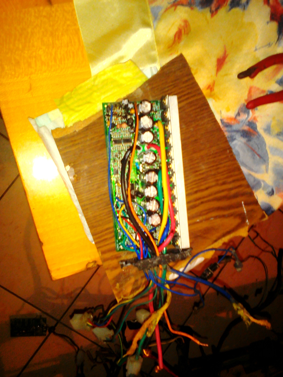 Hogy a vékony vezetékek mik azt meg nehéz kideríteni, legalábbis úgy, hogy jóformán alig kivehető maga a panel is, nem hogy még az is, milyen alkatrészek és vezérlő IC van rajta...