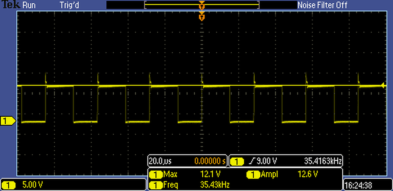 Sziasztok! Adott egy stabiliziált tápegység 2A terhelhetőséggel, és egy NE555-ös IC. A tápfesz állítható a tápegységen, de igazából nem is ez a lényeg. A kimenetet beállítottam úgy, hogy a számomra megfelelő frekvenciájú és kitöltési tényezőjű négyszögjelet lássam. Na most a problémám a következő. A négyszögjeleim elején van egy jelentősebb feszültség tüske amit ki kellene küszöbölni, de nincs ötletem, hogy hogyan, és hogy lehetséges e. Első képen látható, hogy a táp stabil DC, második képen látható a kimenet, a harmadik képen egy kis ráadás van. Egy ultrahangos szenzorra küldöm a jelet, ami a terhelés miatt megváltoztatja a jelalakot. Kérlek ha bármi ötletetek van segítsetek.