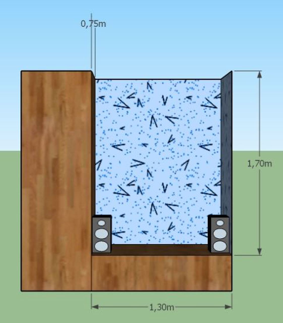 Jobbról szekrény sor (érthetően hosszabban), balról fal. A képen balról csak a szekrény vonaláig rajzoltam a falat, de természetesen azon jóval tovább ér. Mennyezet úgy szintén a szekrény tetőpontja.