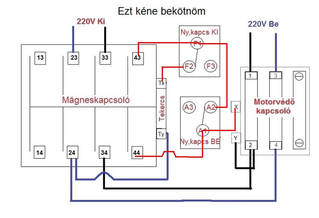 Bocsi az a motorvédő kapcsoló kimaradt az A1 az X-re és a motorvédő is bekötve.