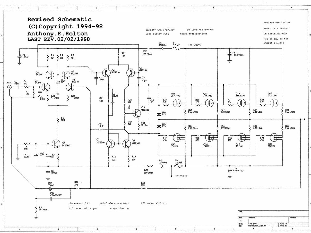 Szerintem jól szól... A 2sk audió fetekkel pláne erre alapul a Baji Imrénél kapható irfp240 irfp9240 es verzió is, nekem annak is bejön a hangja dinamikás erős...Az a kapcsolás ugyanez szinte viszont van akinek nem jön be a hangja nekem pl igen.Az a pár mod hogy a 2 dióda ki van váltva 1 tranzisztorra amivel stabilabb nem mászkál a nyugalmija meg esetleg kaszkádolni a differenciál erősítőket nem nagy áldozat azért hogy működjön.Hozzáteszem van tranzisztoros van monolit ic s végfokom is de messzemenőleg jobban szól és white fül is vagyok,ráadásul ez nem csak az én véleményem sok más emberé is. A puding próbája az evés,