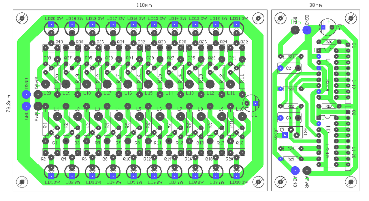 Helló! Mind végig igyekeztem érthetően írni, elnézésedet kérem, ha nem sikerült. Van egy galvanizáló egyenirányító. Ennek a jelét mértem a szkóppal. Ez a mérendő jel, erre tervezted a ledes fesz mérőt. Ennek a kis műszernek a megtáplálásához áll rendelkezésre ~48V Ehez tekerek egy trafót amihez megvásárolok egy ilyen tápot. Gyakorlatilag ennyi. De szeretnék még hangjelzést is, amihez szépen meg is tervezted az áramkört. Ami nekem meg is felel, annyival kiegészítve, hogy az egyenirányító feszültségének a meglétét is figyelje. Mert, ha valami oknál leáll az egyen irányító akkor hanggal okvetlen jelezzen. (Most nincs semmi jelzés és mivel néha egy pillanatra elmegy az áram vagy az egyen irányító hibásodik meg/volt ilyen is/ akkor jelezze) Ha nem nagy kérés még arra szeretnélek megkérni, hogy a hangjelző áramkör nyákját megterveznéd? Előre is köszönöm.