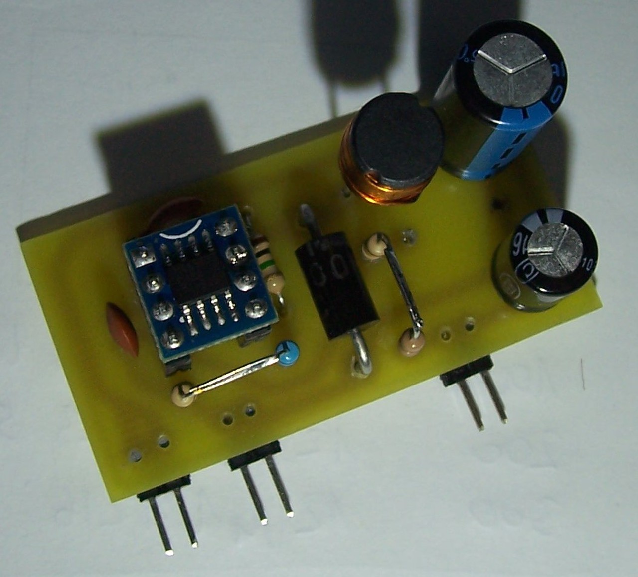 Igazából mivel ez az első DC konverterem épp az SMD alkatrészeket akartam elkerülni, az IC is azért volt DIP8 foglalatban a próbapanelen. Hogy őszinte legyek, nem tudom mennyire tudnék elkészíteni egy nagyrészt SMD alkatrészekből álló panelt megfelelő minőségben.