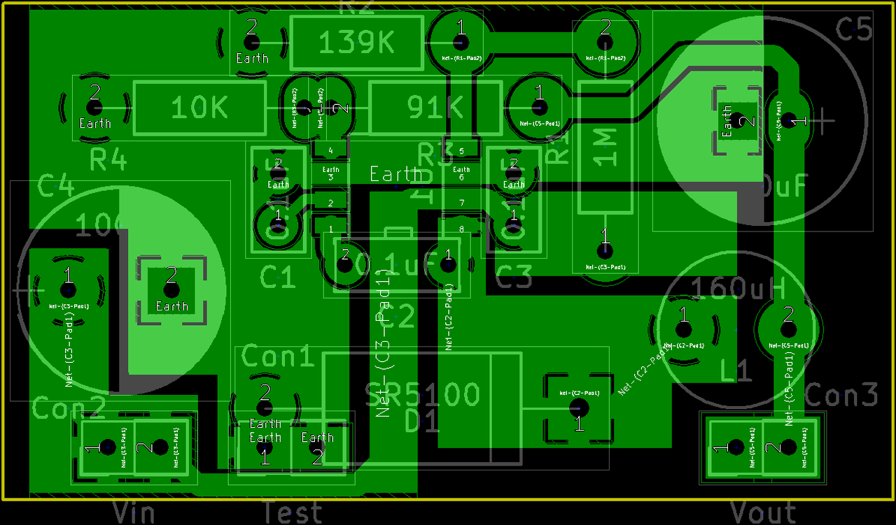 A minimálisaknak meg, bár sokkal praktikusabban is el lehetett volna helyezni az alkatrészeket, C4 jobbra, C5 balra, tekercs alulra, dióda jobbra... A többi pedig ahogy adja magát. És SMD ellenállásokkal, kondikkal. A dióda is lehetne SMD.