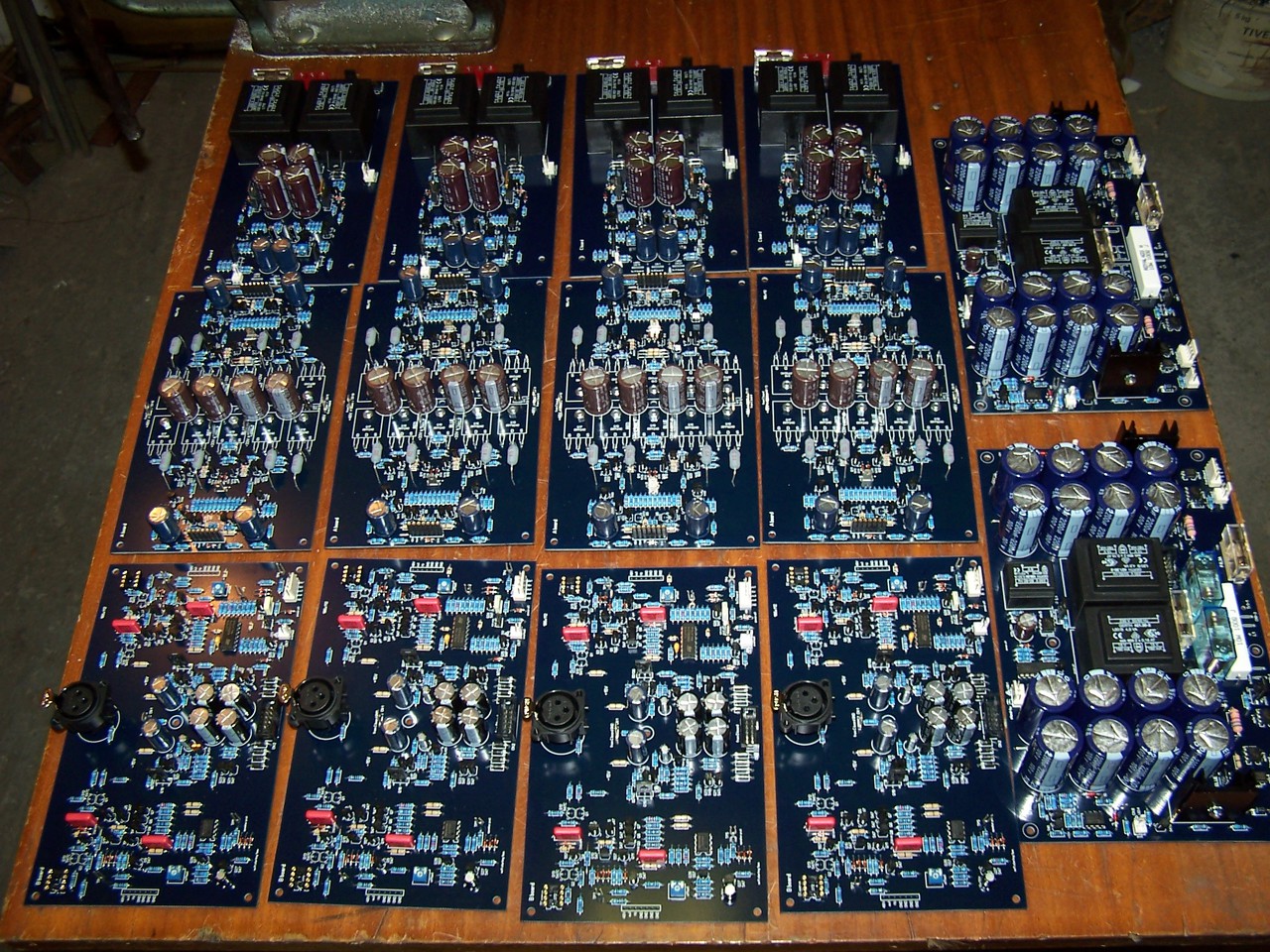 Eredetileg valami STK hibrid IC-s végfoknak feszültem neki, de csak utángyártottakról kaptam infót. Aztán erősen gondolkodtam egy Texas végfokon, de azt már építettem 30 éve. Végül itt véletlen botlottam bele a sokat dícsért J.L.Hood féle végfokra. Először egy Reloop féle NYÁK kivitelezés készült el, BDY73 végfokokkal. Röccre indult, semmi gond, de mire kipróbáltam volna igazán, a lányom elkönyörögte. Másodjára egy S.K. tervezésű NYÁK ra készítettem el, egy brutál bordára, TIP35 végfokkal. Kicsit köhögve iindult, a nyugalmi áram nem akart beállni, de egy drasztikus ellenállás csökkentés meghozta a sikert. Most 8 ohmos hangfalakat hajt, 1,4Amper nyugalmi árammal, a borda 60 C fokos, tápfesz 30V. Miután elindítottam, két hétig ment megállás nélkül. Ez alatt a kondik beformázódtak, az ellenállások, vezetékek is irányultak lettek, a félvezetők is bejáródtak. Bűgásnak nyoma sincs, a hangfalak néma csendben vannak, ha nincsen jel a bemeneten.