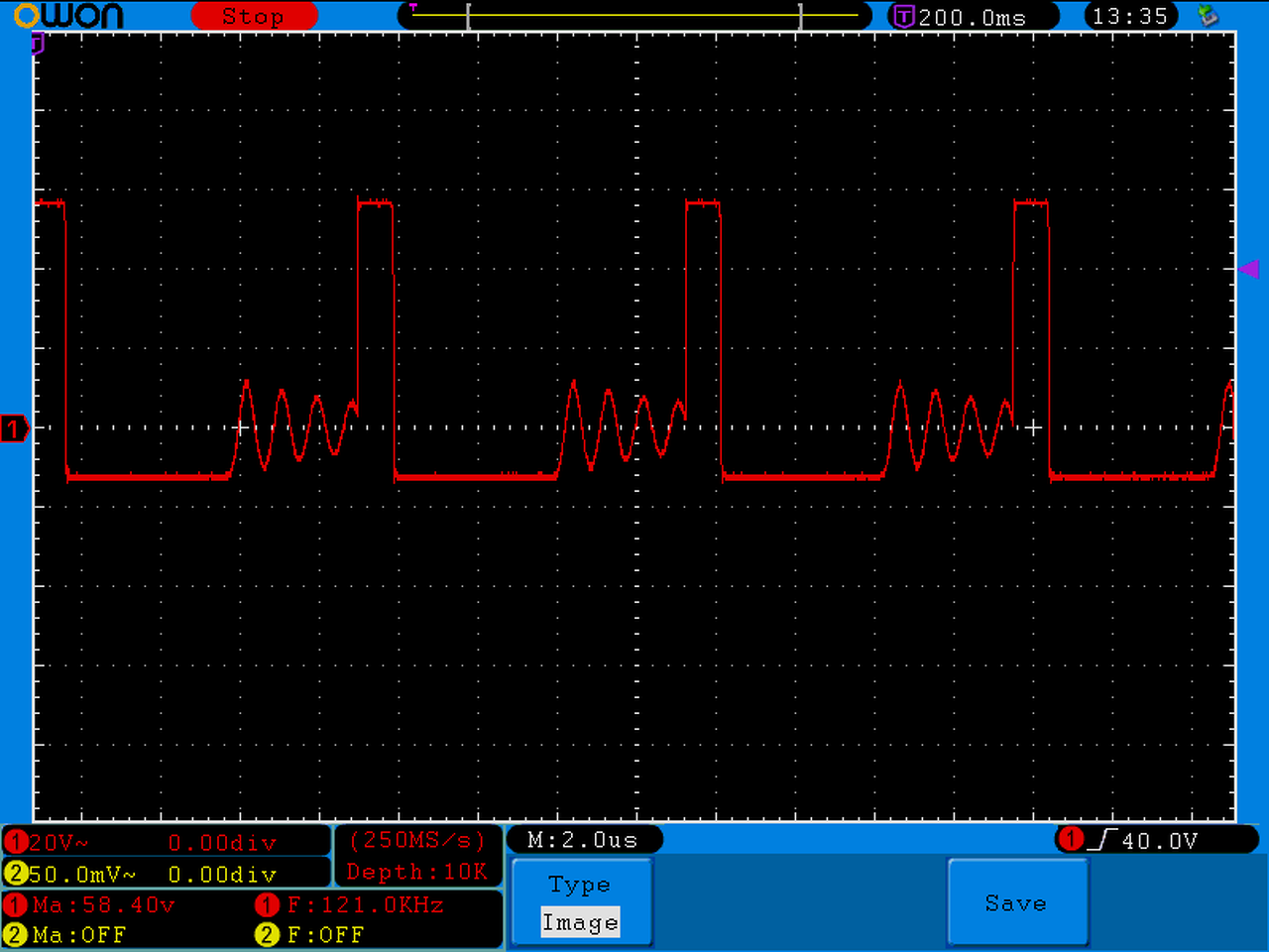 Egyébként a 400ma -nél egy bizonyos idő után már a tekercs is langyos, az normális? Lehet nem pont ide tartozik, de a szkóp nem tudja befogni a képet állóképre, hanem folyamatosan szalad... Éltrigger van beállítva mint látszik a jobb alsó sarokban 40V -ra, és hiába állítgatom kissebbre vagy nagyobbra, ugyanúgy szalad a kép... A hozzászólás módosítva: Júl 5, 2017