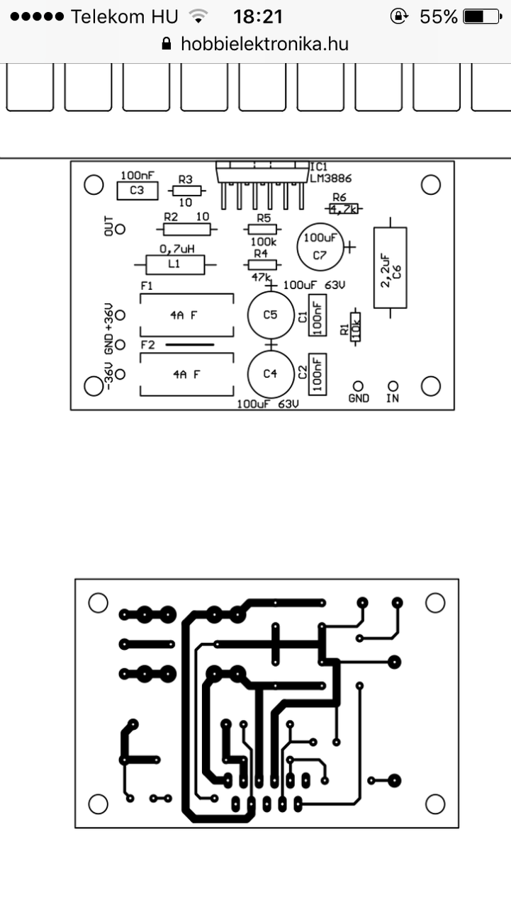 Itt hobbielektronikán találtam egy kapcsolást, pdf-be le lehetett tölteni saját káromon tapasztaltam hogy tükrözni kellett volna.. így a másik panelen alulról forrasztottam be az IC-t a probléma hogy a kimeneten pozitív tápfeszültség van valami ötlet lenne mi okozhatja ?