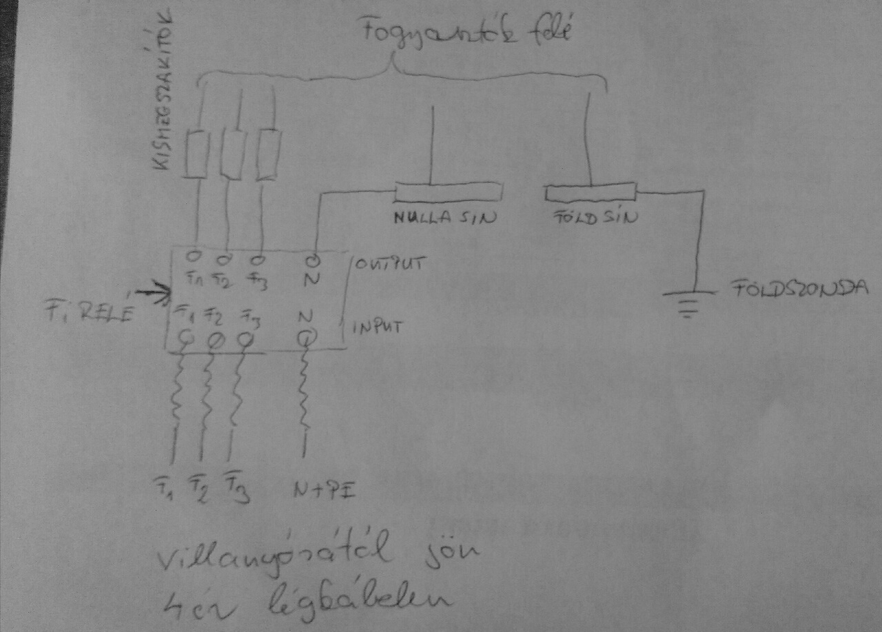Egy olyan villanyszerelèsi kèrdèst szeretnèk kèrdevni hohy van az alábbi halózati felállás. Ez egy a villanyóra szekrènytől tavolabb eső èpület amiben most a halózat ujra lesz vezetèkezve. Ebbe az èpűletbe jelenleg egy 4eres lègkábelen jön be a mèrőtől a villamos betáp, ahol a nulla ès a föld össze van kötve már az óránál. Kèrdès az hogy a rajz szerint a fi relè kimeneti oldalán a nulla sínt össze kell-e kötnöm a föld sínnel akkor is ha itt helyileg teszek le egy földszindát? A földelő szondát ugy gondoltam hogy itt az èpületnèl teszem le, s ez megy a fönd sínre, s így megvan a szètválasztott nulla ès föld köröm.