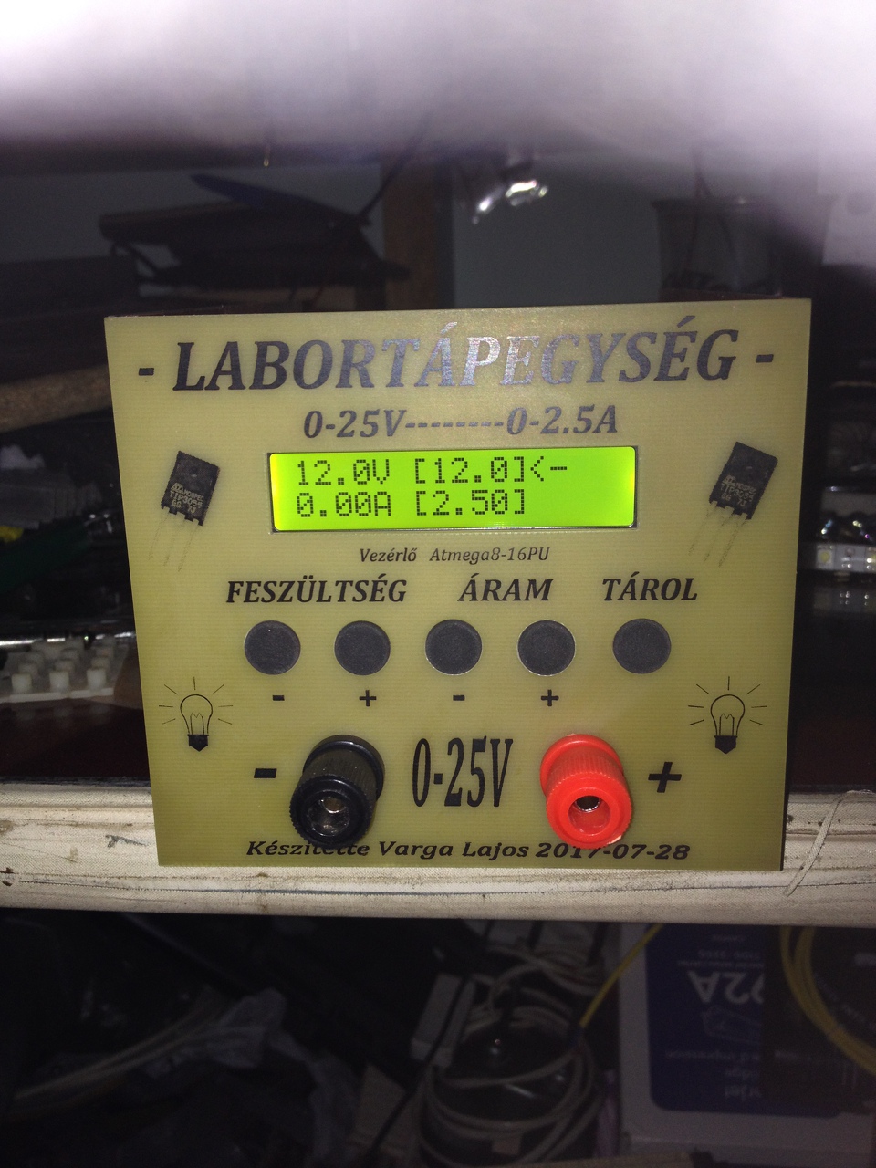 Egy egyszerű, de hasznos készüléket építettem pár munkaóra rászánásával. Már régóta szerettem volna hordozhatóvá tenni a rövidzár védett hálózati tápomat. Szerintem mindenki ismeri a trükköt, egy izzó sorba a próbált készülékkel és az, ha zárlatos nem veri le a biztosítékot. Régóta használom megelégedéssel az elődöt, de hiányzott belőle az, hogy az izzót át lehessen hidalni egy kapcsolóval. Most megcsináltam. A piros kapcsoló kétpólusú, az a főkapcsoló, a kis feketével meg át lehet hidalni az izzót (összeköti a két sarkát). Nem lett a legszebb, abból készült ami akadt itthon. PC táp dobozba lett beszerelve, így az izzó hűtése biztosított és jól látni ha parázslik, viszont mégsem olyan sérülékeny, mintha csak úgy pőrén volna szerelve. Ráadásul az előddel szemben meg van az az előnye, hogy könnyen hordozható. A hozzászólás módosítva: Júl 29, 2017