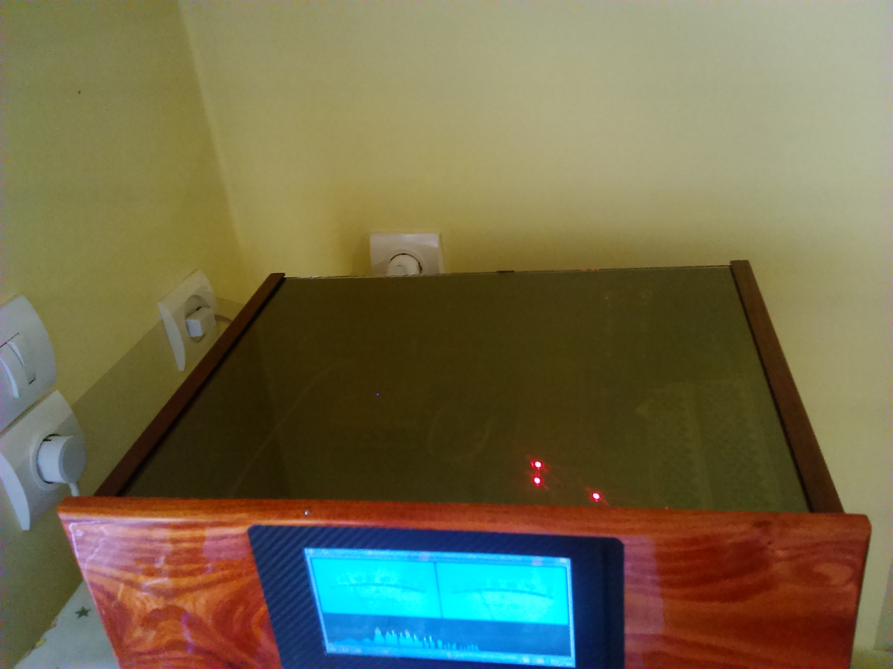 Pofás lett. Bár nekem nem tetszik a digitális analóg kivezérlésjelző. A fa előlap viszont szép.