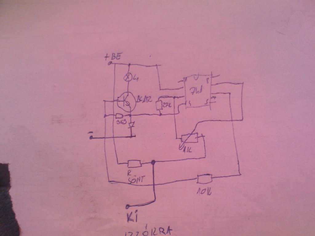 Tönkrement egy ilyen utólagosan beépített utánfutó visszajelző az autóban. Most meg kellene csinálni ,vagy kiváltani valamivel, mert kellene a visszajelző működése is. Visszarajzoltam a szerkezetet, szerintetek mi lehet a gond? Ha a 3,9K-s ellenállást kiveszem, akkor alapból halványan ég az izzó, amikor pedig 2,5A-es terhelést kötök a kimenetre, akkor kicsit halványodik. Ha 5,5A-el terhelem, akkor sem alszik el az izzó. Egyébként nem csinál semmit. Amikor tönkrement, akkor úgy emlékszem, hogy a sönt ment tönkre, kettéolvadt a szál. Most pótoltam, de az említett jelenséget csinálja. Meg talán a dióda is rossz volt.