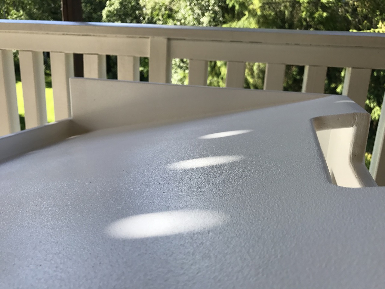 Eredetileg (gyárilag) volt ennek egy lépcsőzetes teteje, aminek a közepéből jött a víz a tetején lévő kőgolyó alatt és amolyan dekoráció szerepe volt. Tulajdonképpen most csak valami tényleg nagyon halk csurgás hangja van, ahogy a folyamatos vízsugár bele érezik a vízbe. Tényleg alig hallani. A fotó óta betettem éknek egy fél ruhacsipeszt a vastag szívószál mellé az iratcsipeszbe, hogy az ne csússzon le. Hogy mi célt szolgál? Ööö... Izé... Pontosan én se tudom, csak megcsináltam, mert miért ne?
