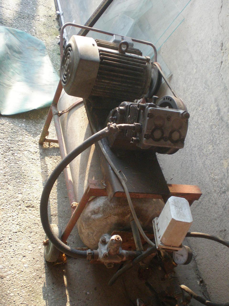 Ez egy három fázisú 1,5kW-os 950-es fordulatú villanymotor. Azért bíztam benne, mert ezt a sűrítőt ezzel az áttétellel nagyapámnál gond nélkül hajtotta. Még az alaplemez és a nyomáskapcsoló is ugyan az, de még a kombinált szelep a termelőágban is! És nem bírja. Gondolkodtam, hogy ez mégis hogy lehet és arra jutottam, hogy ez egy kéthengeres sűrítő, viszont a takarítás közben jöttem rá, hogy az egyik szívóoldali szelep olyan szinten el volt koszolódva, hogy a beszívott levegőt egy az egyben vissza ki is nyomta a szívócsövön. Így gyakorlatilag mint egyhengeres kompresszor dolgozott, azt meg elbírta a 1,5kW-os motor. Nekem van egy ugyan ilyen fizikai méretekkel rendelkező 3kW-os motorom, de annak nagyobb a fordulatszáma mégpedig 1420-as és a tengelyén 115mm átmérőjű ékszíjtárcsa van. A légsűrítőn 210mm-es az ékszíjtárcsa.Most miközben a hozzászólást írtam utánakerestem a légsűrítő adatainak. Csatolom. Ebből világosan látszik, hogy 780kPa 1800 fordulatnál 2,8kW meghajtó teljesítményt igényel, szóval muszáj lesz rátennem a 3kW-os motort. Illetve a másik képen az alap amiből elkezdtem a munkát, nagyapám régi kompresszora, aminek egy napon a belülről elrozsdásodott tartálya felrobban.