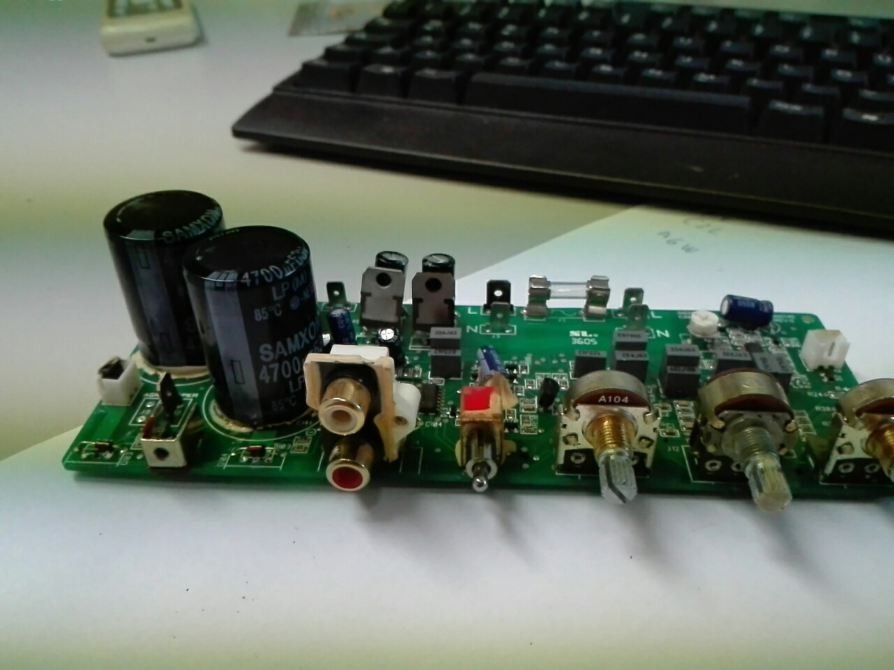 A jó öreg TBA810 erősítő egyenirányítóval szűrőkondival kompletten.