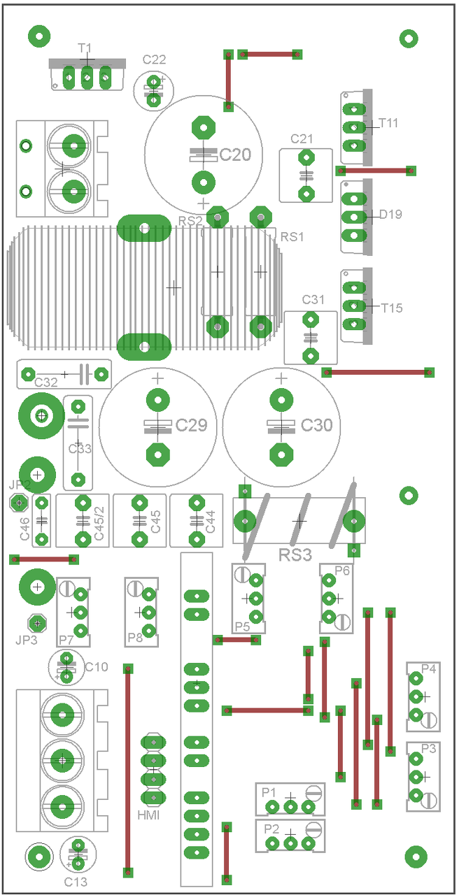 A digital board.brd panelt nézve, ha a számozást 1-11-ig balról-jobbra nézem, és beazonosítom (illetve látszik a feliratozás kinagyitva a brd filet), akkor a -5V-os kimenet a brd panelterv alapján a legutolsó (11 kivezetésnek kellene lenni). Az sch rajzod alapján a 4-es kivezetésre került a digital board.png szerint.