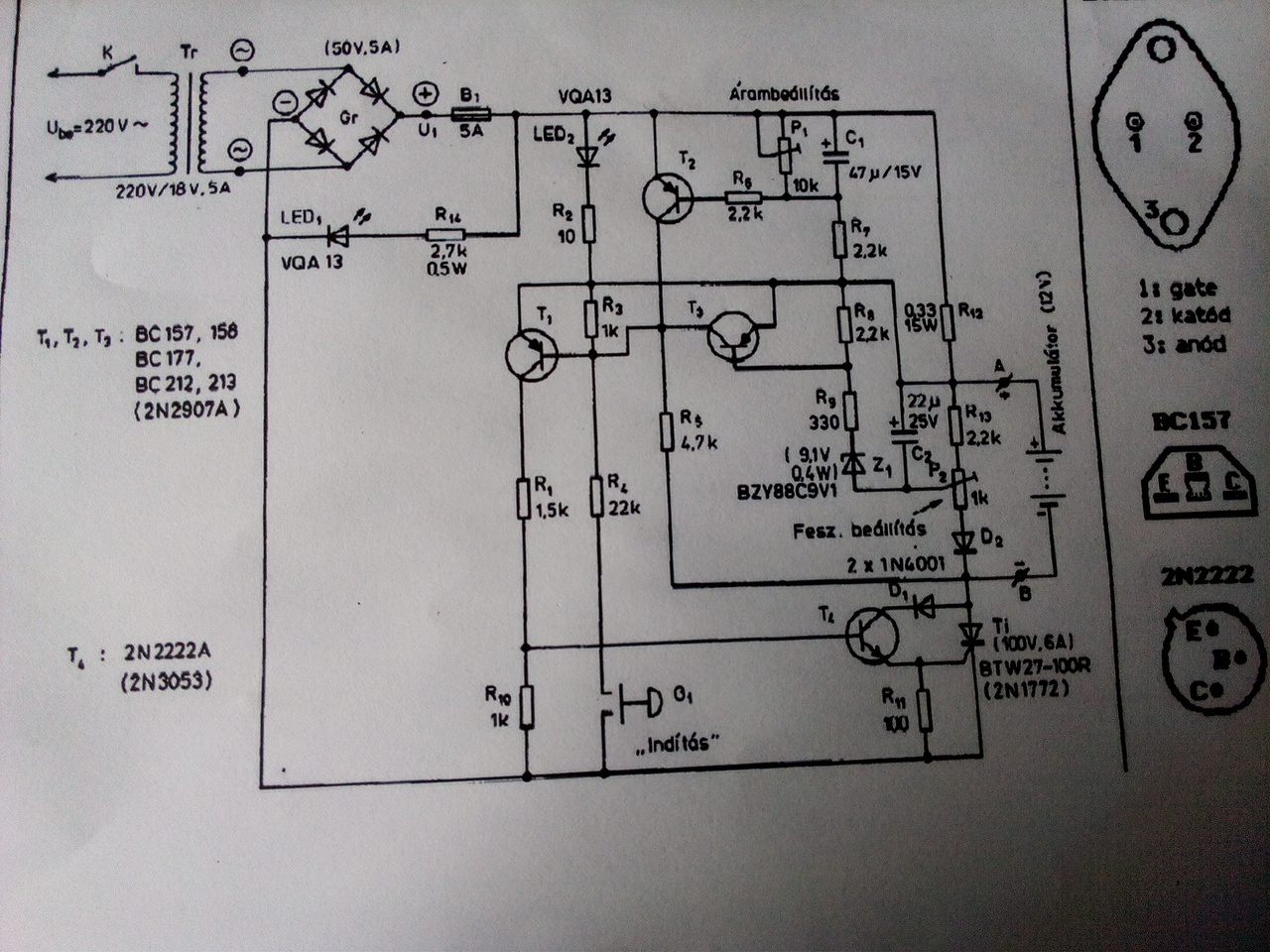 Szia, Van egy olyan rajzom, csak mos ttelepítettem újra a pem, s éppen nem találom hasonló korú lehet, szintén thirisztoros, abban van fesz, s áram szabályozás is /trimmerkkel/, tehát elméletileg mindenfajta aksihoz be lehet állítai, a váltást meg egy egyszerű dzsekszivel meg lehet oldani. Anyira emlékszem, hogy 18V~ ról megy és IC helyett 4-5 tranzisztor vezérli a thirisztort. Azon 5A-es trafóra van tervezve, de bagyobb trafó/thiristor bármi elképzelhető, mivel SR vezérlésű. Szerintem 24V os trafról is el kellen menjen. amint megtallom a gépemen, felteszem.