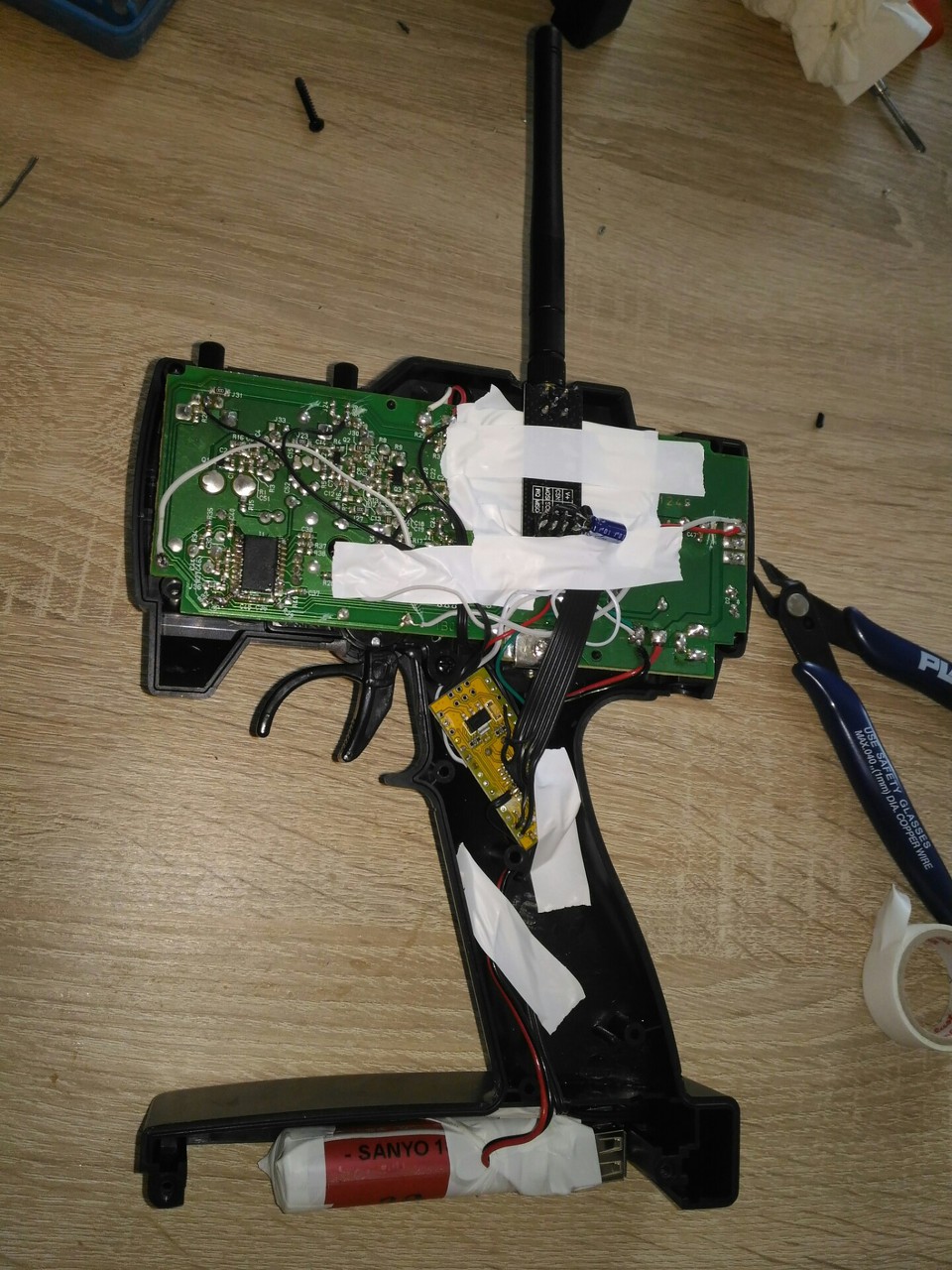 Van egy normál RC távirányítós autóm, és zavart, hogy nem tudtam tuningolni a távirányítóját, plusz szépen lassan lecsökkent a hatótávolsága is, új elemek sem segítettek. Van másik távom, így kvarc cserével kiderült, hogy a távirányítóval van gond. Az 1m-es antennáját se szerettem, és azt se, hogy a hatótáv szélén az autó elkezdett össze vissza menni.