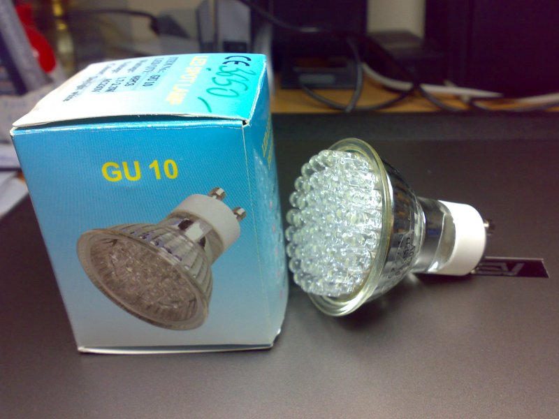 A led 230V 7W GU10 es. A led kifejezetten fényerőszabályozható, ezért kicsit drágább is volt, más fajta elektronika van benne, mint a nem szabályozhatókban.