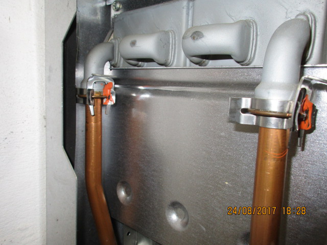 A használati meleg víznél nincs csöpögés, de sajnos a fűtéscsőnél mind a be és ki menetelnél kicsi gyöngyözés látható.