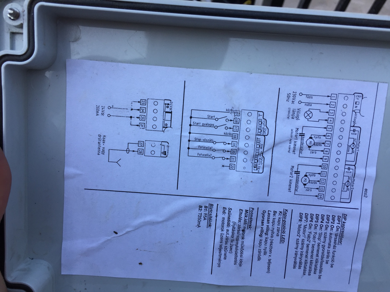 Ismerős ez csatlakozó rendszer és annak jelölése. Azért nem ártana tudni, hogy milyen fajta kapu (toló, nyíló kertkapu, vagy szekcionált garázskapu) milyen motorral van ellátva (DC24V...AC230V)... A hozzászólás módosítva: Szept 17, 2017