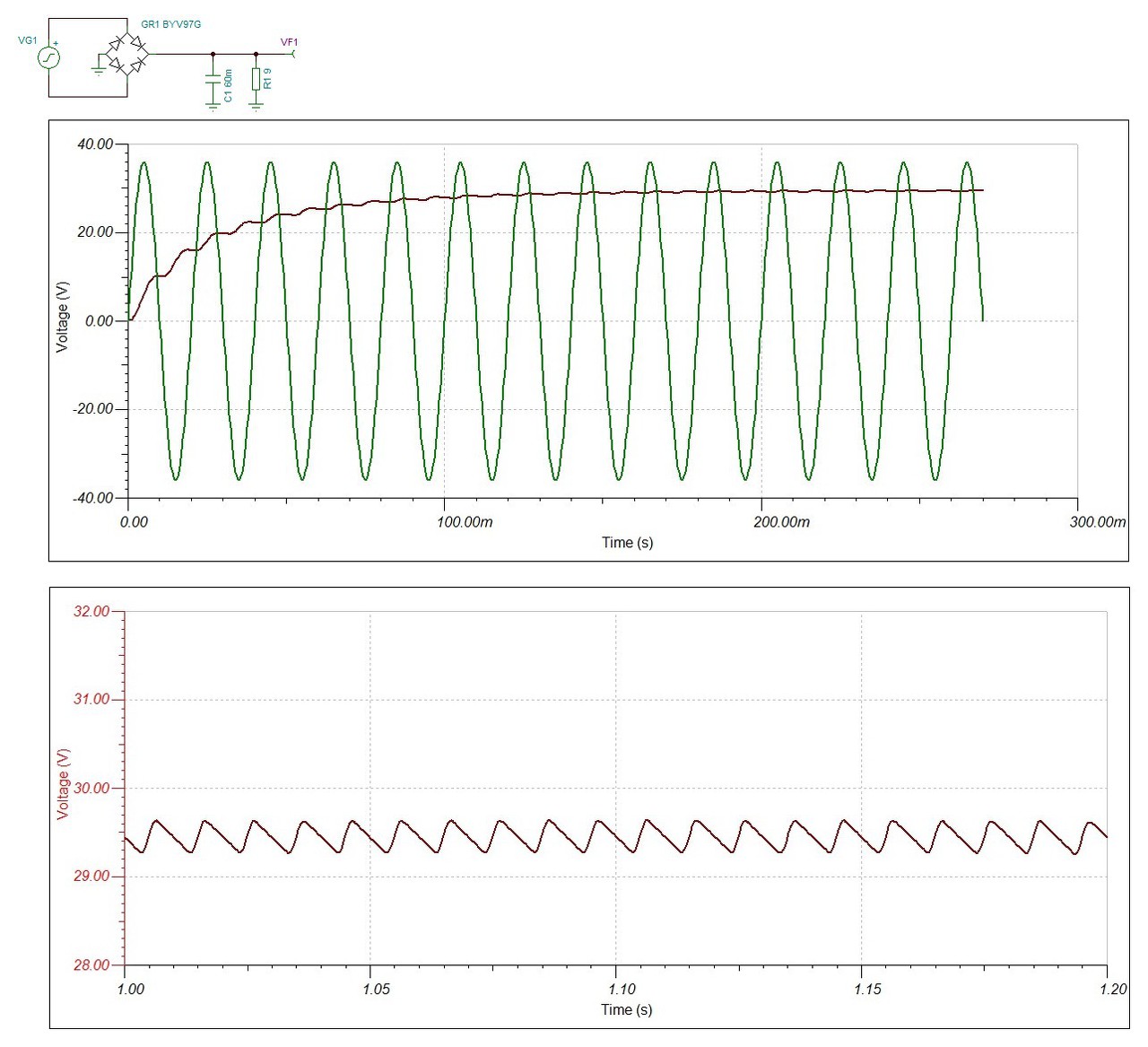 A hullámosságát sosem néztem a tápnak, búgás se nincs, de kíváncsiságból modelleztem a tápot, rettenetes!!! "C" kép...