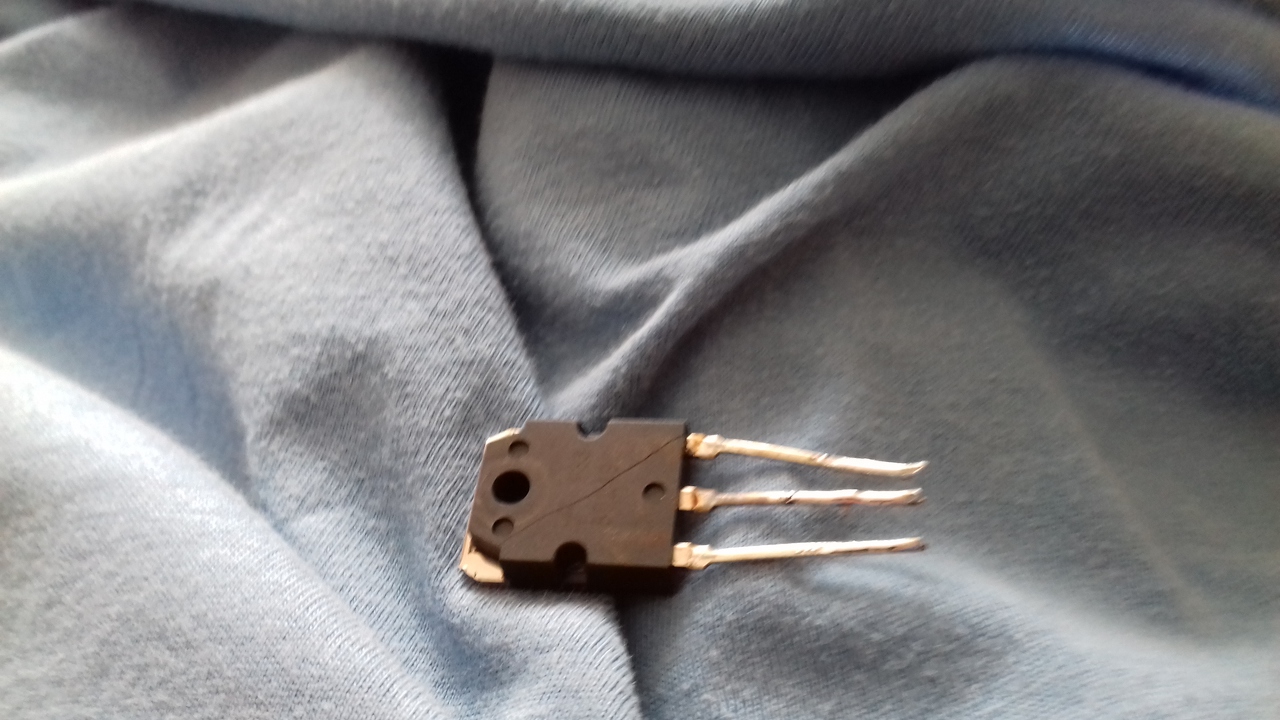 Ha a képen látható módon szerelt és hűtött, valamint 100 Celsiuson ment, akkor hősiesen kitartott a végsőkig. A hűtőlemezt így nagyon vékonynak látom, a hőátadás nagyon gyér, a hűtőfelülete felén van a tranzisztor szerelve. Ezen javítani kell, ha egyéb körülmény - áram-feszültség - marad.