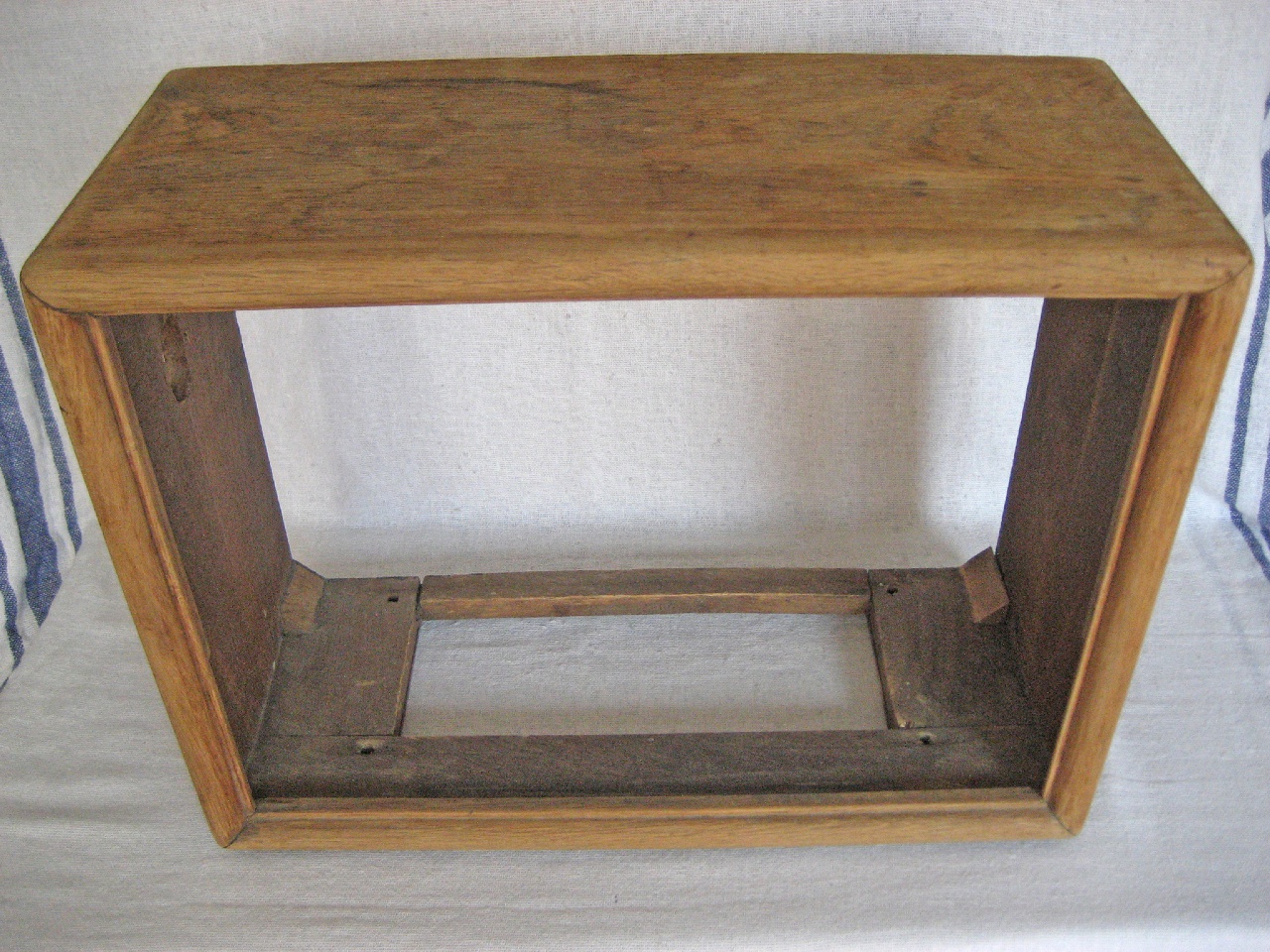 Elkezdtem a doboz felújítását, az első, durva csiszolás utáni állapotot mutatják a képek. A doboz nincs furnérozva, felülete természetes fa.