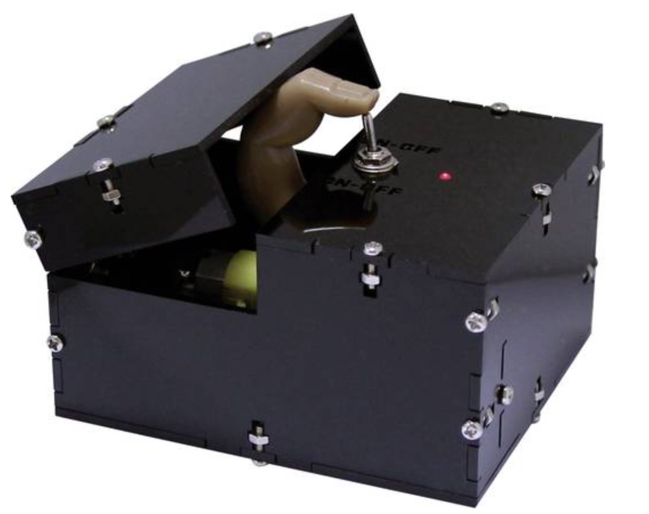 Ez egy fekete doboz rajta egy kapcsoloval. Eddig mindenki, aki látta, bekapcsolta. Erre nagy meglepetésére a dobozbol kinyul egy ujj és kikapcsolja magát.