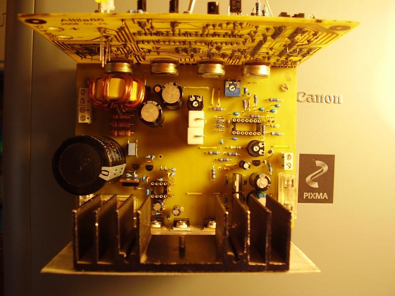 Én nem csináltam vmi nagy dolgot, de ahhoz képest... Egy selejtezett, 20 éves Ladából kikerült autórádióból csináltam egy közel 100w-os mono végerősítőt. Minden megmaradt, végül is csak a potihoz kellett nyúlni. A tápot egy izmos 250w-os 12v-os trafóról kapja. A Videoton DC2020-asom elég durván rázza olyan 4% hangerőn!!! Majdnem fél cm-es membránlengés mellet óriási jó hang. Mélyet szépen adja tovább az erősítő. nem torzít. Az egészet egy kisebb hangszóródobozba dobtam bele. aminek a belső elrendezése még hátra van. ha érdekel, dobok képeket...
