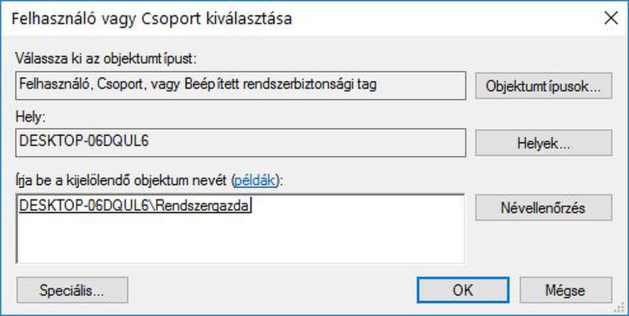 Te Rendszergaza néven vagy bejelentkezve? Alapból ez a fiók tiltva van, külön kell engedélyezni. A saját bejelentkezési nevedet válaszd ki, vagy a Rendszergazdák csoportot (ha benne vagy) esetleg a Mindenki csoportot.