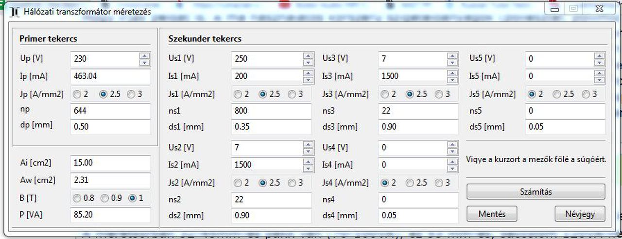Igen, kicsit kisebb, 106 VA a primer áram, szerintem az alul szereplő 85 VA az adott értékekkel átvitt teljesítmény, valamint kellően alágerjesztve. Van rézfóliám, tervbe a berakása. Ebben a méretezőben az a szimpatikus, hogy az áramsűrűségeket, gerjesztést lehet variálni.