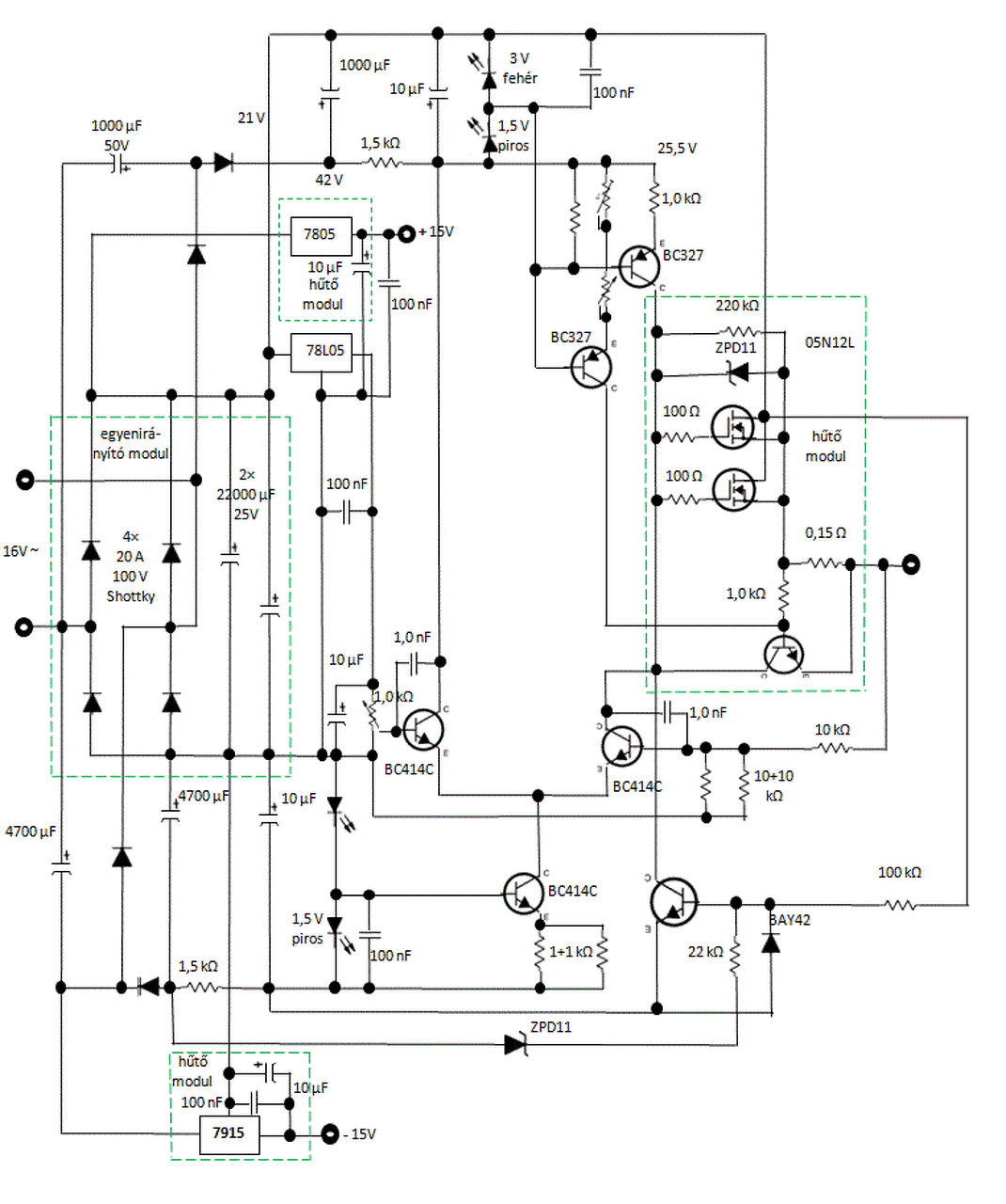 Most véleményezd! Alul egy tranzisztorral és pár alkatrésszel elérhető, hogy a negatív tápfesz 14-5 V alá esik, a kimenő feszültséget letiltja.