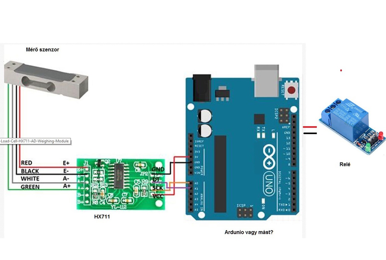Lényegében az lenne a feladata, hogy egy relét kéne vezérelni. Lenne egy mérleg szenzor ami továbbítaná a jelet egy Ardunio Uno felé majd azzal kéne egy relét vezérelni olyan módon, hogy például ha a szenzor eléri a 15kg-ot akkor azzal kapcsolja a relét.