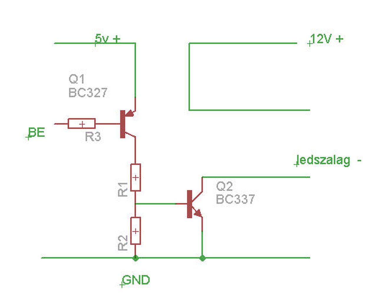 Az az 1k-s ellenállás tul kicsi. Amugy ilyet nem a neten kellene keresgélni hanem néhány percre elmerülni a tranzisztor elméletben. ( mi és hogyan müködik).