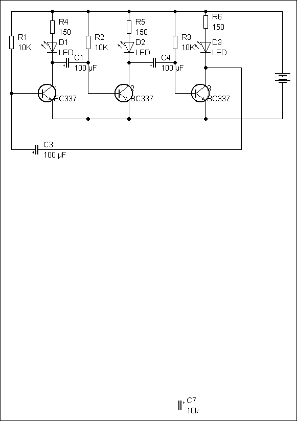 Én úgy emlékszem annó megépítettem de mivel "lyukat futtatott nem tetszett.Ahogy nézegetem bárhány fokozattal működnie kellene neki. Bár hosszabb láncoknál lehet hogy több led is fut egyszerre.(indulásnál nem tiltják ki egymást a tranzisztorok ha több van 3 nál).