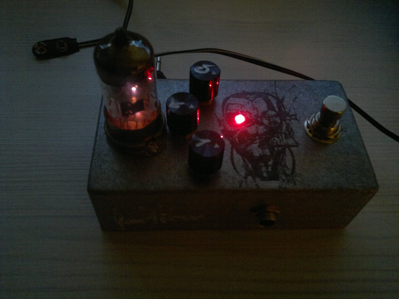 Elkészült egy Matsumin Valvecaster gitár effekt pedál. Az elektroncső, egy ECC82. A kapcsolás sok helyen fellelhető, de én innen szedtem le:Bővebben: Link Teszek fel pár képet is. A belsejéről sajnos nem készítettem képet, de már az új tulajdonosánál van, így már nem is fogok . A dobozra Eddie-t (Iron Maiden kabala figura) vasalásos technikával varázsoltam rá. Végezetül jöjjenek a fotók.