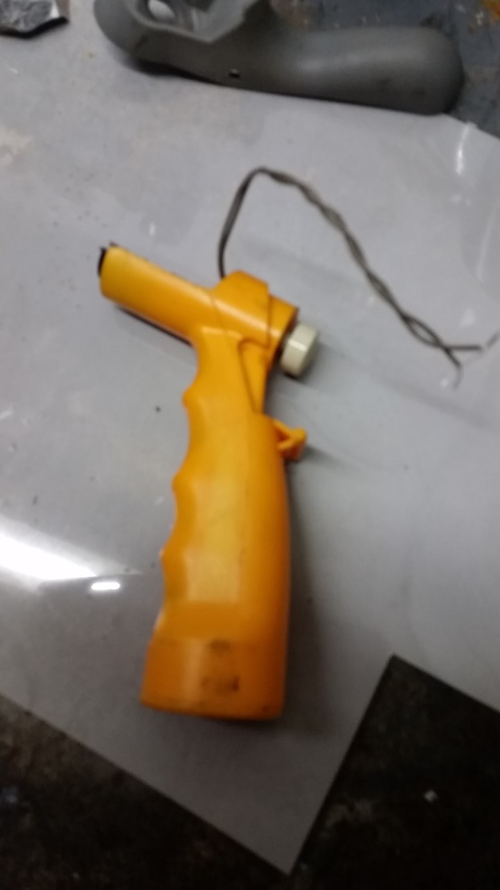 A markolat egy szétfagyott egyszer használatos locsoló pisztoly (nem is értem miért nem lett kidobva) A nyomógomb PC reset gombja, kíváncsi vagyok meddig fogja bírni.