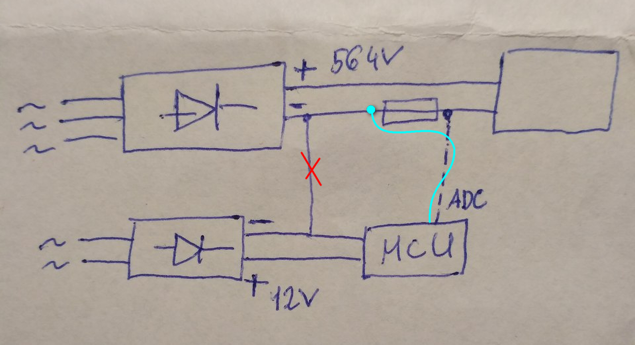 Ha a 3x400V nincs leválasztva, de a negatív sínjén lévő elektronika nem baj, hogy veszélyes potenciálon van, akkor az oda nyugodtan elhelyezhető. A tápellátását is meg kell oldani, amit lehet egy hálózati transzformátoron keresztül is. A transzformátor fogja a megfelelő leválasztás biztosítani, tehát a tápegységet összekötheted a 564Vdc negatív pontjával, de akkor minden a mi a táphoz van kötve, veszélyes potenciálra kerül.