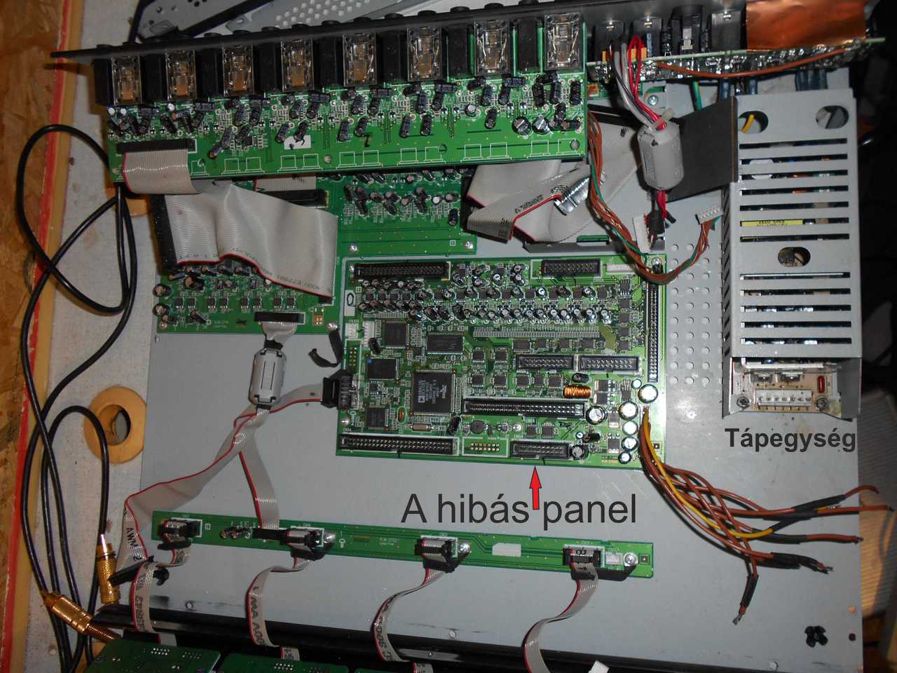 Szia! A panel minden négyzetcentijét átnéztem nagyító alatt törést, repedést keresve. Sajnos szemmel láthatóan nem látszik a hibás alkatrész. De ez nem gerjedés, nem brumm Egyszercsak toríztva kezdett szólni aztán semmi csak villog minden led és csend valamint a master kivezérés jelzők 0dB fölé ütögetnek. Most a hétvégén lesz időm több mindent megmérni és vizsgálni rajta.